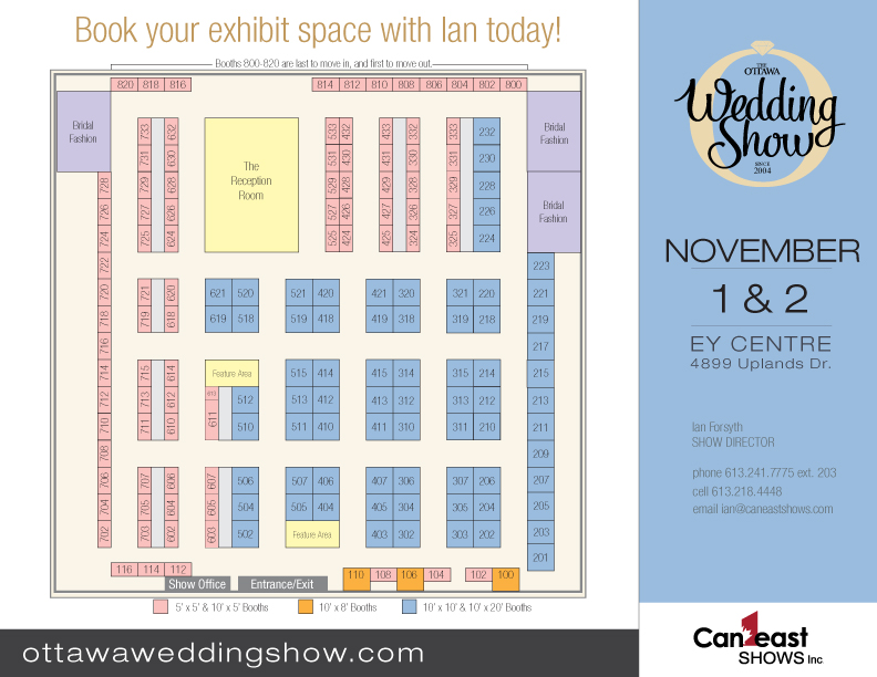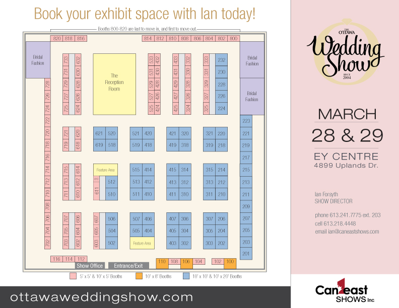- The Exhibitor may use The Ottawa Wedding Show logo to promote only their participation at the Show. It cannot be used in any way that is perceived as an endorsement by Caneast Shows Inc. of the Exhibitor’s company, product, and/or service.